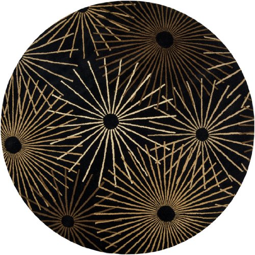 Check Here for Customer Reviews and Buy with Special Price 8' Ganesha Sunburst Contemporary Jet Black and Tan Wool Round Area Throw Rug
