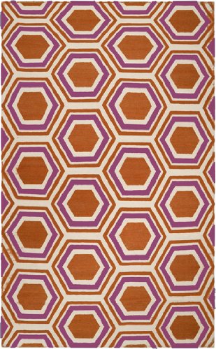 Check Here for Customer Reviews and Buy with Special Price 5' x 8' Retro Octagon Orange and Raspberry Wool Reversible Area Throw Rug