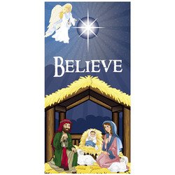 - 3' x 6' vinyl "BELIEVE" Nativity scene DOOR BANNER