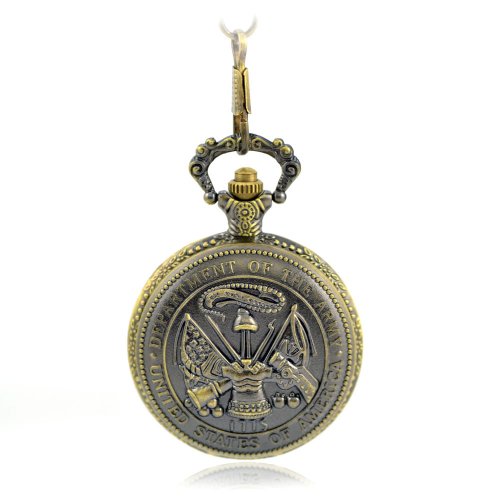 Creddeal Us Department of Army Pin Bronze Antique Pocket Watch Brass Tone + Chain with Gift Box