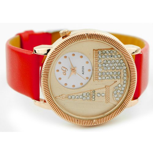 What's new on Free Shipping Christmas Gift Women Fashion Hot Sale 100% Leather Strap Quartz RED Watch WA2029 - See Details :