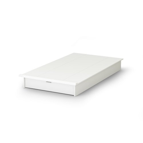 South Shore Sandbox Collection 39-Inch Twin Platform Bed with Drawer, Pure White - This Sandbox Twin 39-inch platform bed, with its neutral and trendy Pure White finish, will fit well with today’s styles. The space under the bed is maximized through a drawer at the end of the bed with a metal handle in a matte silver finish that will match any type of decor. This bed is an economical choice since it is designed to be used without a box spring. The interior drawer dimensions are 35-1/2-inch wide left to right by 19-3/4-inch front to back and is equipped with metal slides for